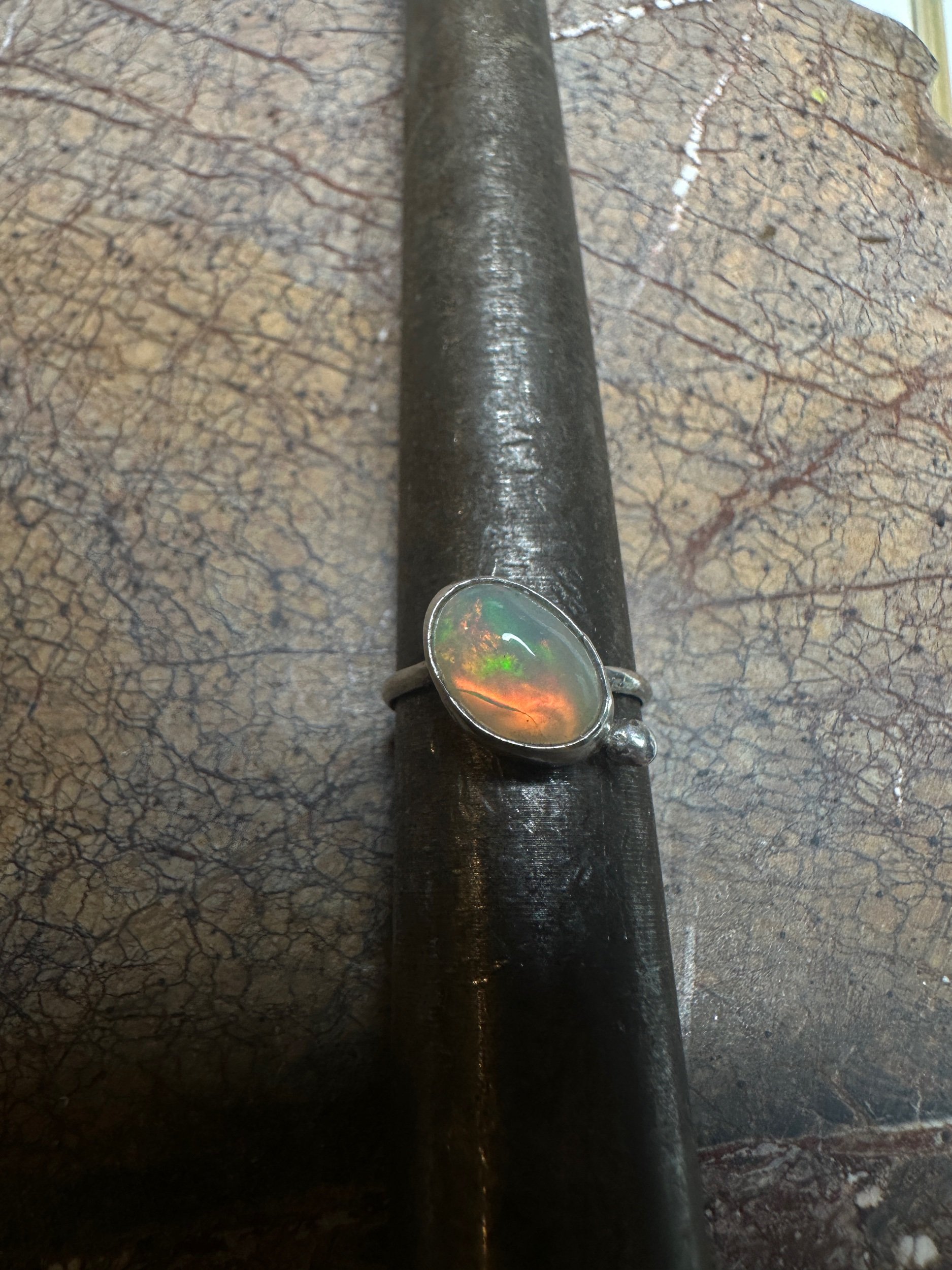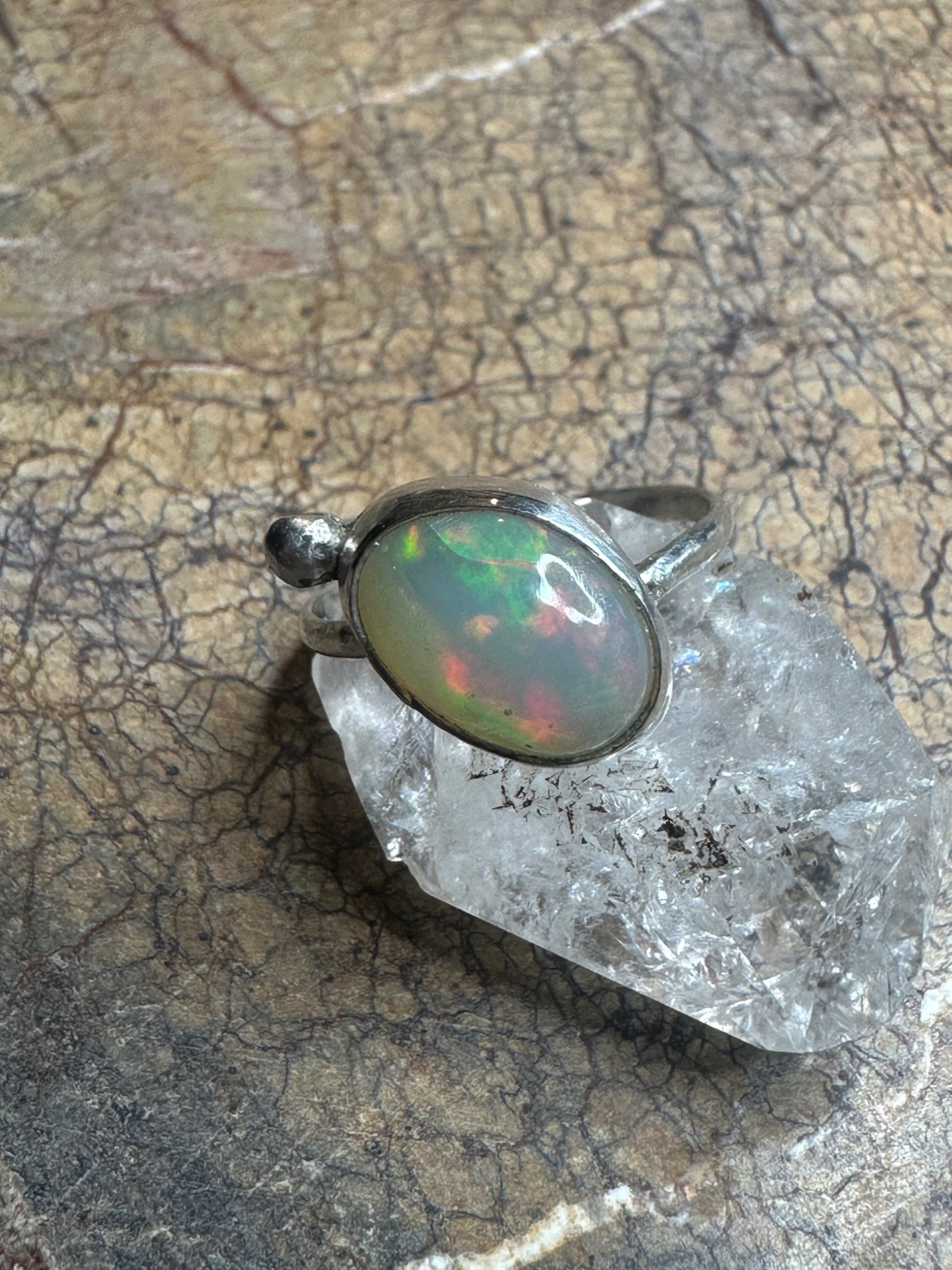 Glisten opal sterling bezel set silver ring