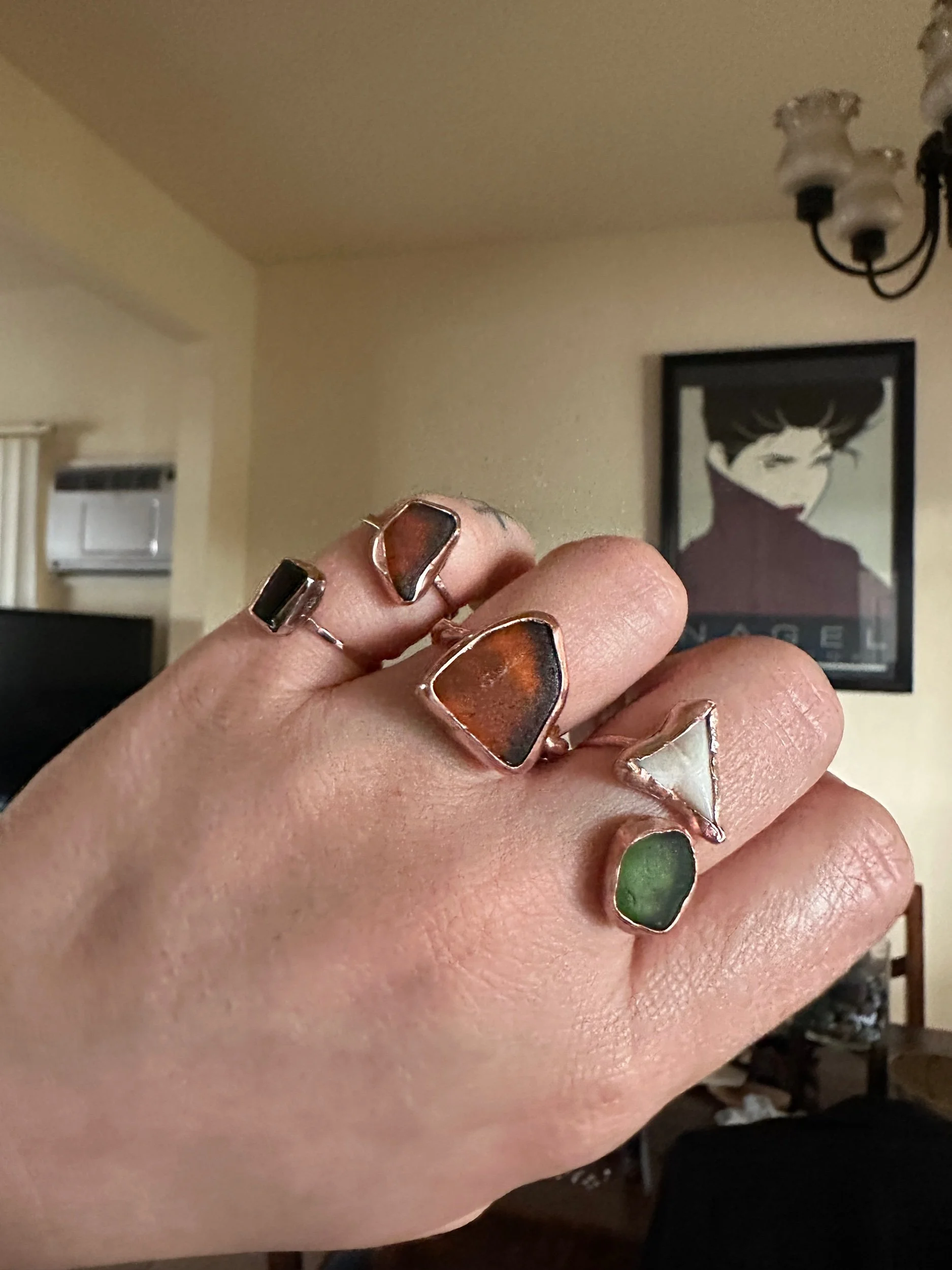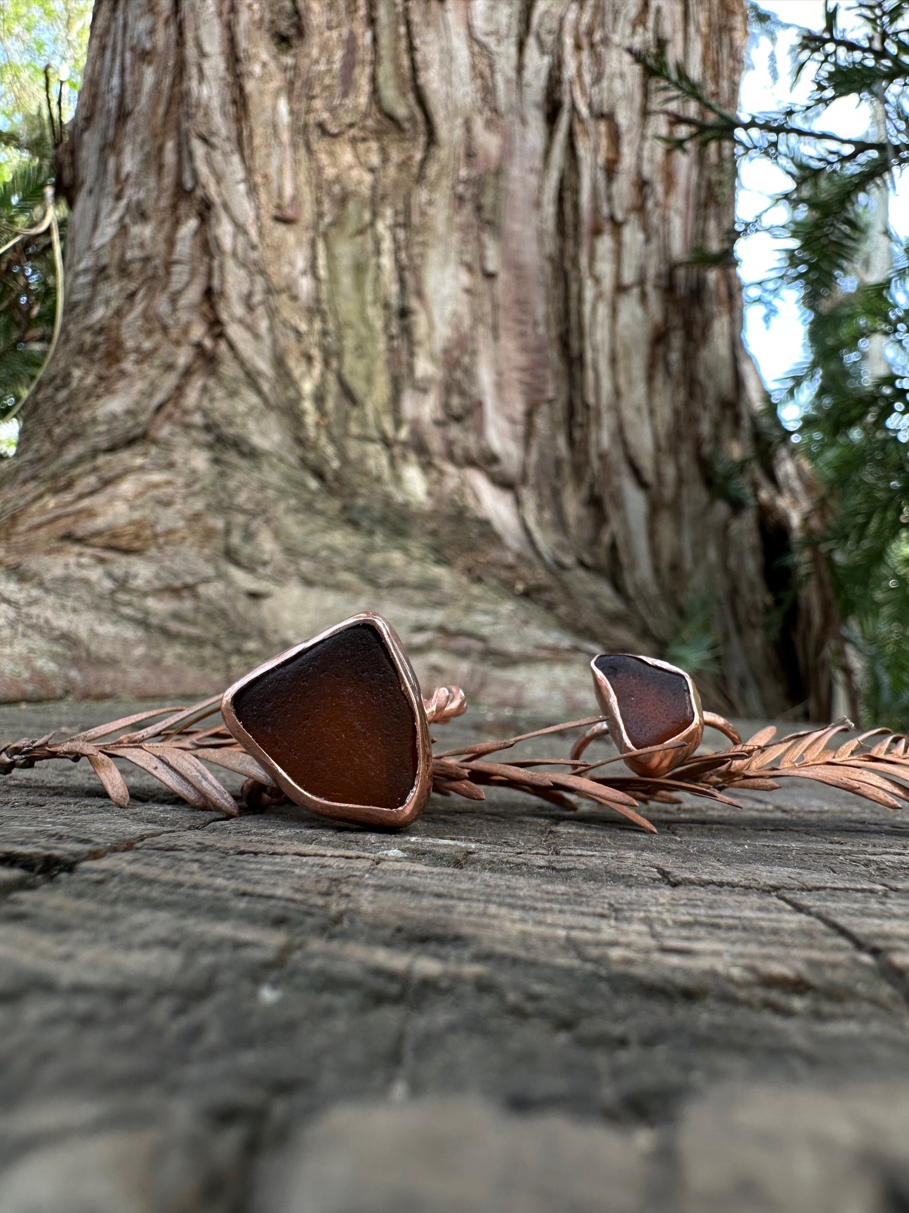 Ocean floor shark tooth and sea glass copper open ring