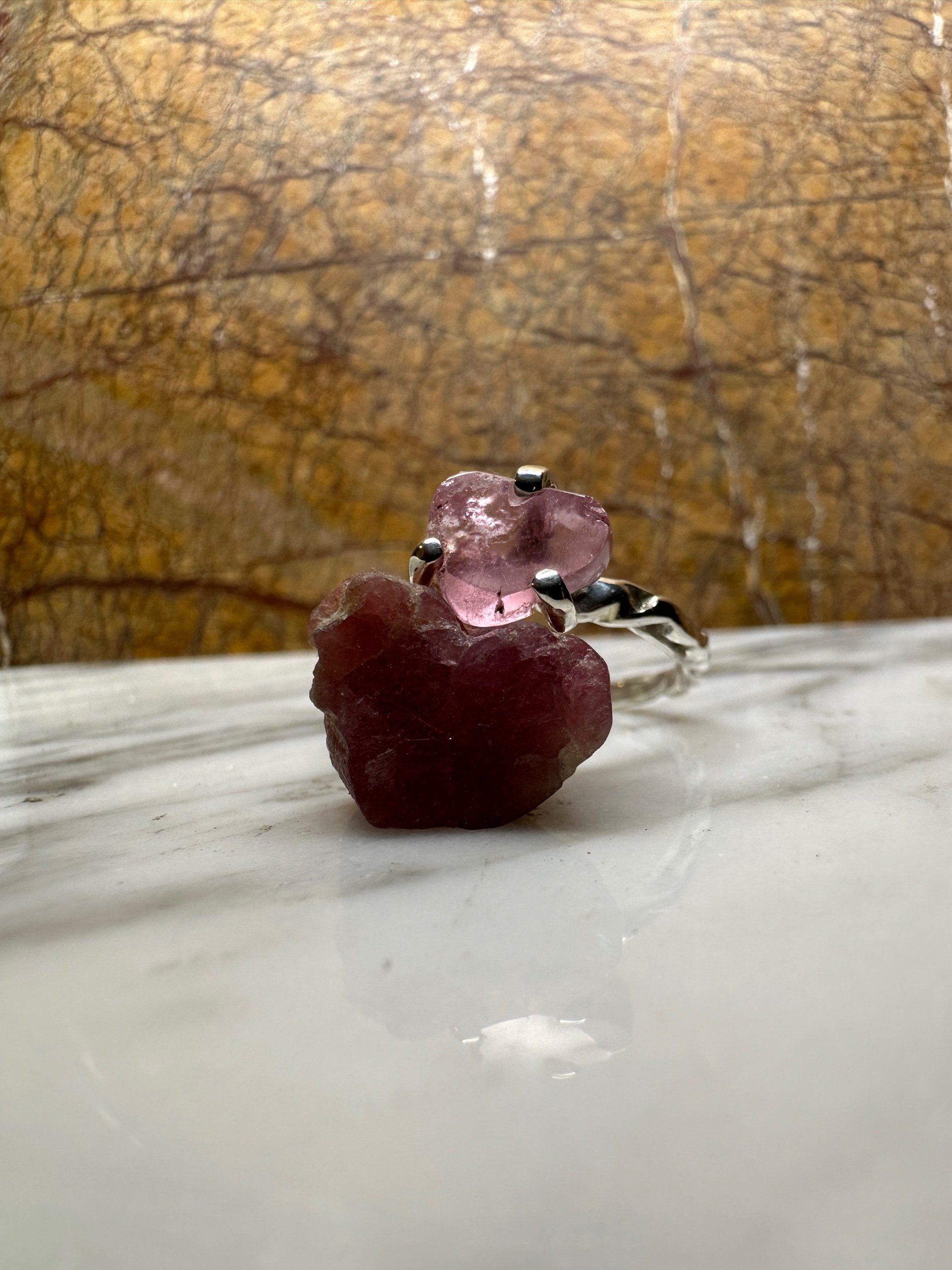 Custom pink tourmaline wedding ring