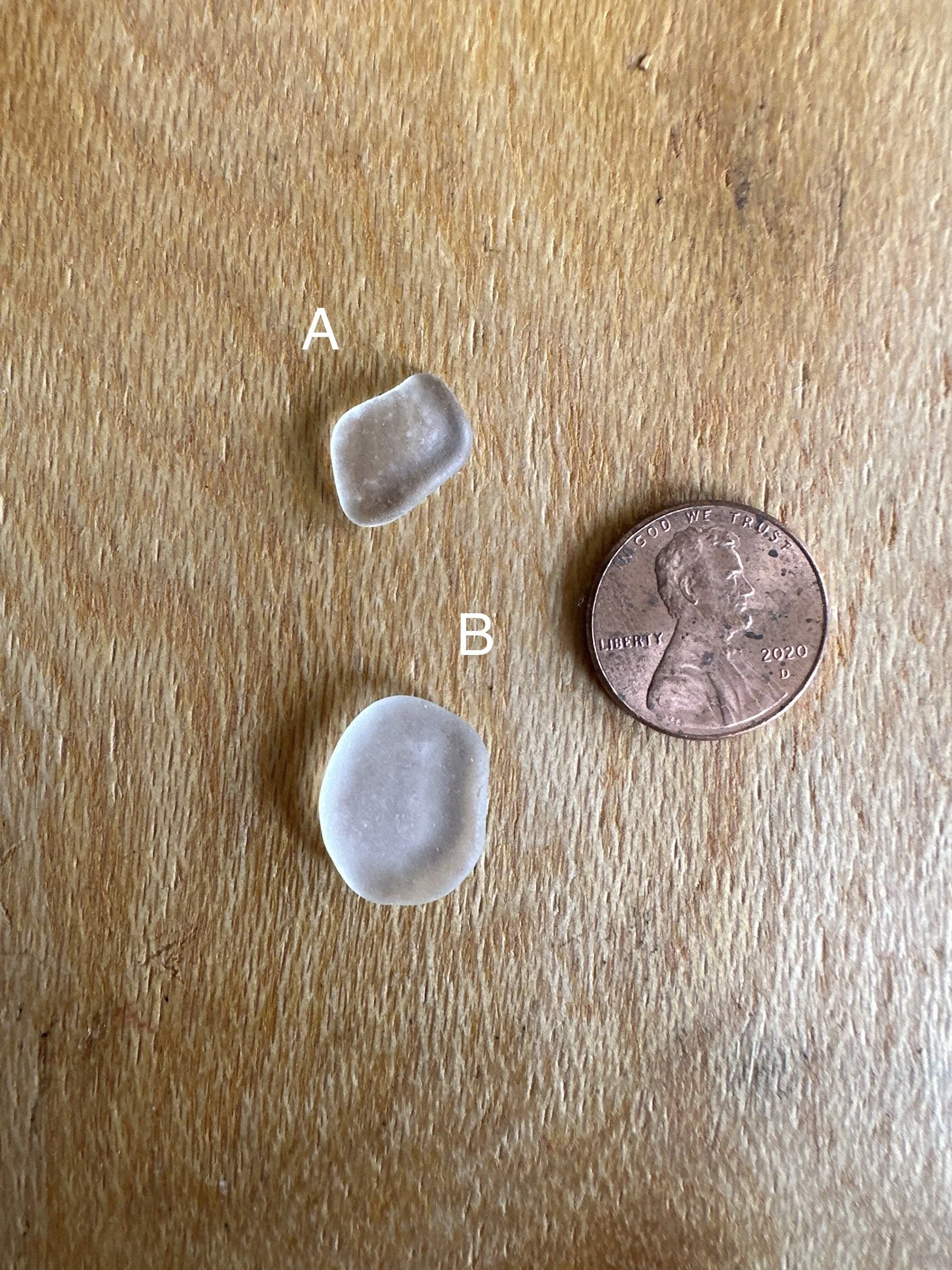 It takes at least thirty to forty years of tossing and tumbling in the ocean to turn a regular piece of glass into a piece of sea glass. Sea glass, from its years of scraping against sand and rocks, is frosty and smooth.
